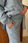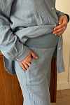 Брюки свободного кроя из мягкого хлопкового муслина, которые обязательно оценят любители натуральных тканей. Широкий комфортный пояс из кулирки можно носить на животик, а отвернув - под животик. Пояс эластичный, это позволит носить брюки как во время беременности, так и после, когда объёмы уходят постепенно. Также для удобства резинку можно регулировать по параметрам талии и животика, а по бокам расположены удобные карманы. Муслин идеален на жару: дышащий, гигроскопичный и невесомый. Отличный выбор на всё лето. Идеальной парой к таким брюкам станет муслиновая рубашка Дунай из нашей коллекции.