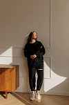 Стильные брюки свободного кроя из футера премиум класса. Материал невероятно приятный на ощупь и мягкий, не растягивается и служит очень долго. Дополнительная обработка ткани препятствует образованию катышек. Наша фирменная посадка отлично корректирует фигуру, на поясе резинка с кулиской, в боковых швах карманы, а манжеты на резинке. На левой брючине декоративная молния, которую можно носить расстегнутой.Идеальная пара к нашим брюкам - свитшот из футера премиум класса. Вместе это стильный и актуальный костюм для современной мамы.