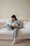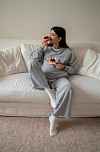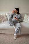 Параметры модели: Параметры модели изделия в карамельном цвете и серый меланж: Рост 170 см, грудь 78 см, талия 65 см, бедра 91 см, На модели брюки в размере 42. Параметры модели изделия в цвете Сливочное масло: Рост 170,грудь 84, талия 60, бедра 90, на модели брюки в размере 42.