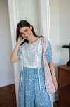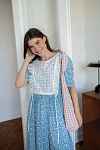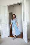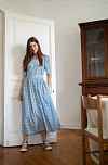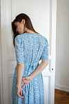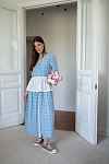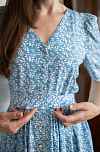 Платье Шарлотта миди из штапеля - голубой с веточками