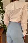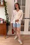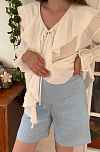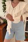 В бежевом цвете шорты выполнены изо льна двойного умягчения, поэтому ткань мягче и ощущается тоньше.