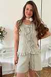 Стильные шорты из натуральной крапивы для самых красивых мам. Удобная посадка и комфортная длина шорт подходят практически любому типу фигуры. Пояс на мягкой резинке, а по бокам удобные карманы. Шорты из крапивы - прекрасная база для стильного летнего гардероба. Сочетайте их с футболкой или лонгсливом. Идеальная пара для шорт - жилет из крапивы с секретами для кормления и оверсайз жакет из новой коллекции. Обратите внимание, после стирки ткань дает усадку 1,5 см в длину - не покупайте изделие впритык по размеру и соблюдайте рекомендации по стирке.