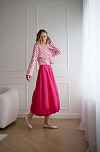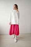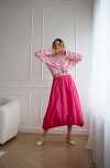 Новая в нашей коллекции юбка А-силуэта. Низ юбки напоминает классический фасон «баллончик», однако наша версия не утяжелена подкладом. Это делает ее эффектной, яркой, при этом лёгкой, воздушной и достаточно простой в уходе. Юбка не сковывает шаг, а благодаря поясу с мягкой резинкой внутри, модель комфортно садится на талию. Также мы предусмотрели по поясу шлефки, чтобы можно было носить любимый ремешок. Юбка выполнена из натуральной ткани - итальянского поплина высокого качества. “Baloon” станет ярким акцентом в гардеробе. Такой фасон стильно смотрится с обувью на плоском ходу, кедами, кроссовками, мягкими балетками, что безусловно делает жизнь мамы проще. Новинка идеально подойдет на весну и лето. С ней можно создавать образы как на выход так и на каждый день. Подберите к нашей “Baloon” удобный верх из коллекции IVA Design и будьте неотразимы. Небольшая напоминалка - надеваем и снимаем через голову."